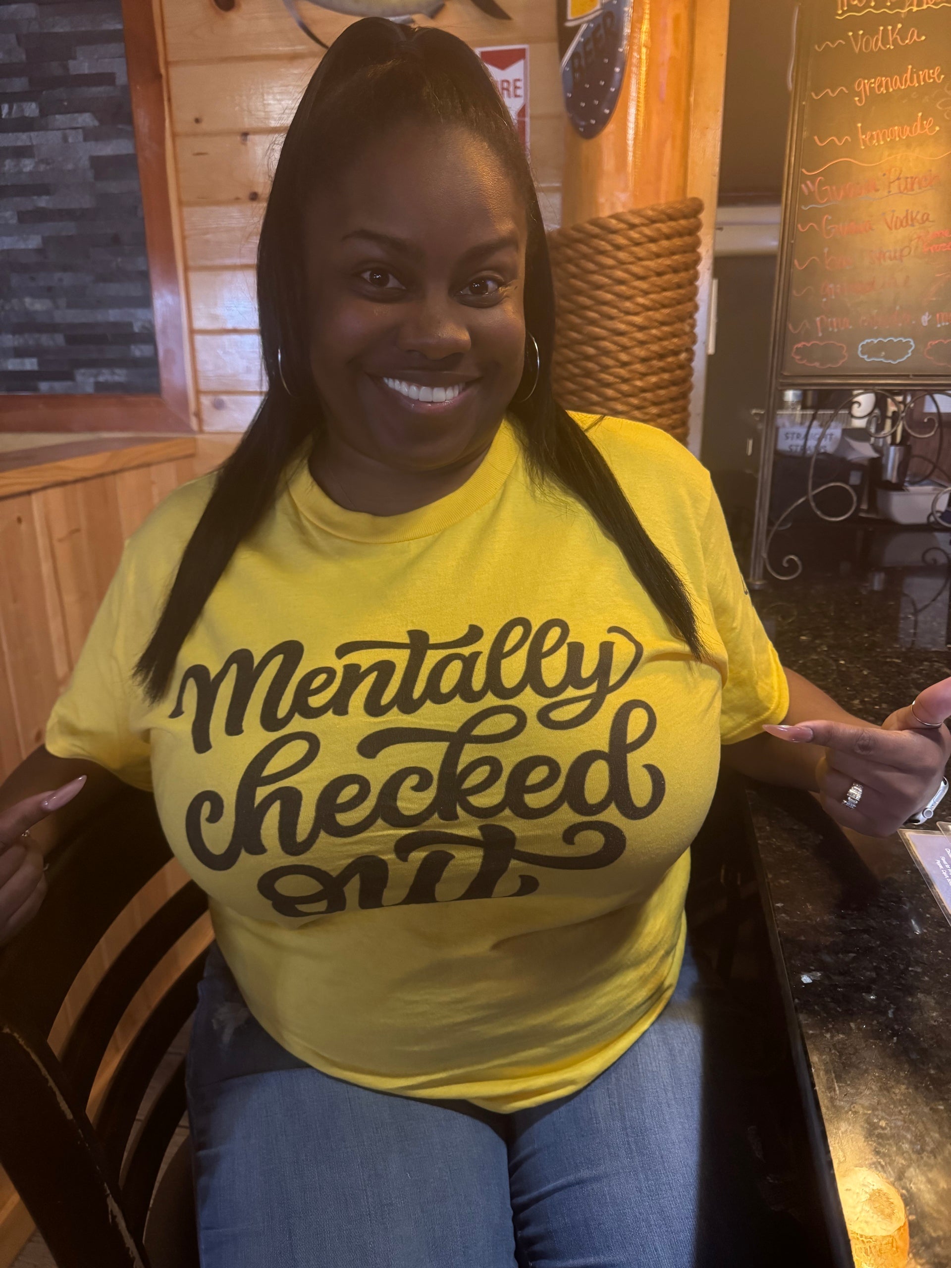 I recently purchased the ‘Mentally Checked Out’ shirt in yellow and black and will definitely purchase again! It was a true t shirt versus other websites selling jersey material. Customer service was exceptional as well!